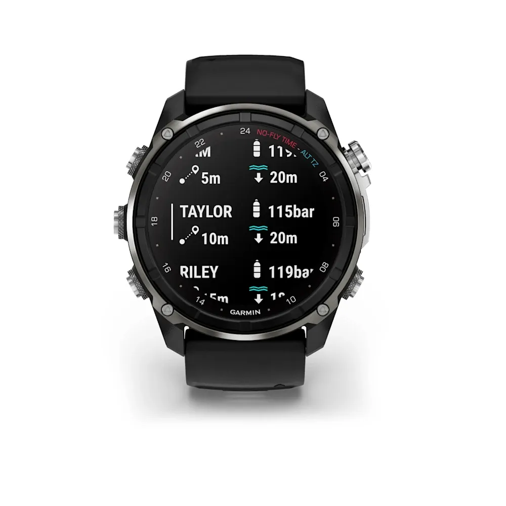 Dotato di monitoraggio e comunicazione con tecnologia sonar SubWave™, questo evoluto dive computer e smartwatch ¹ con integrazione dell'aria, vanta innovazioni Garmin studiate per aiutarti a ottenere il massimo dall'immersione, oltre a proporre allenamento multisport e a funzionalità smart per il tuo stile di vita attivo fuori dall'acqua.