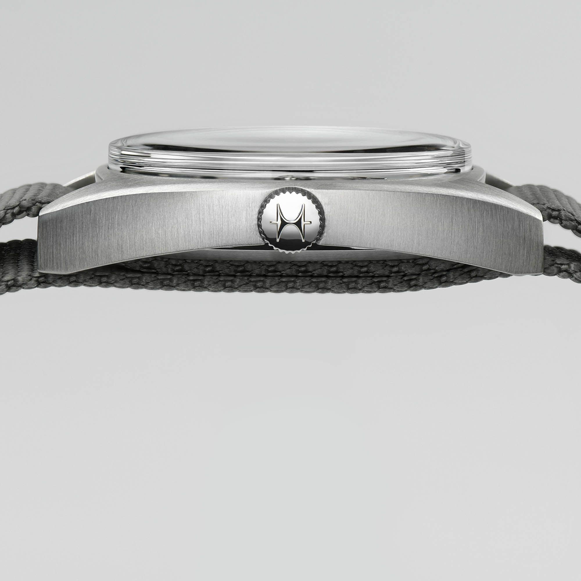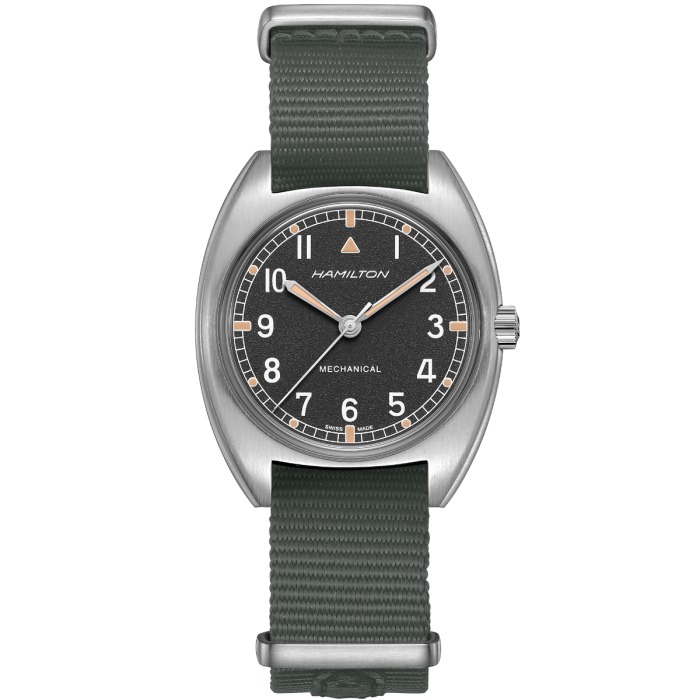 Alimentato dal movimento a carica manuale H-50 con 80 ore di riserva di carica, il Khaki Pilot Pioneer reinterpreta un orologio militare vintage prodotto per la British Royal Air Force nel 1973. Con un design caratteristico del quadrante e un robusto cinturino NATO, questo orologio militare ha carattere da vendere.