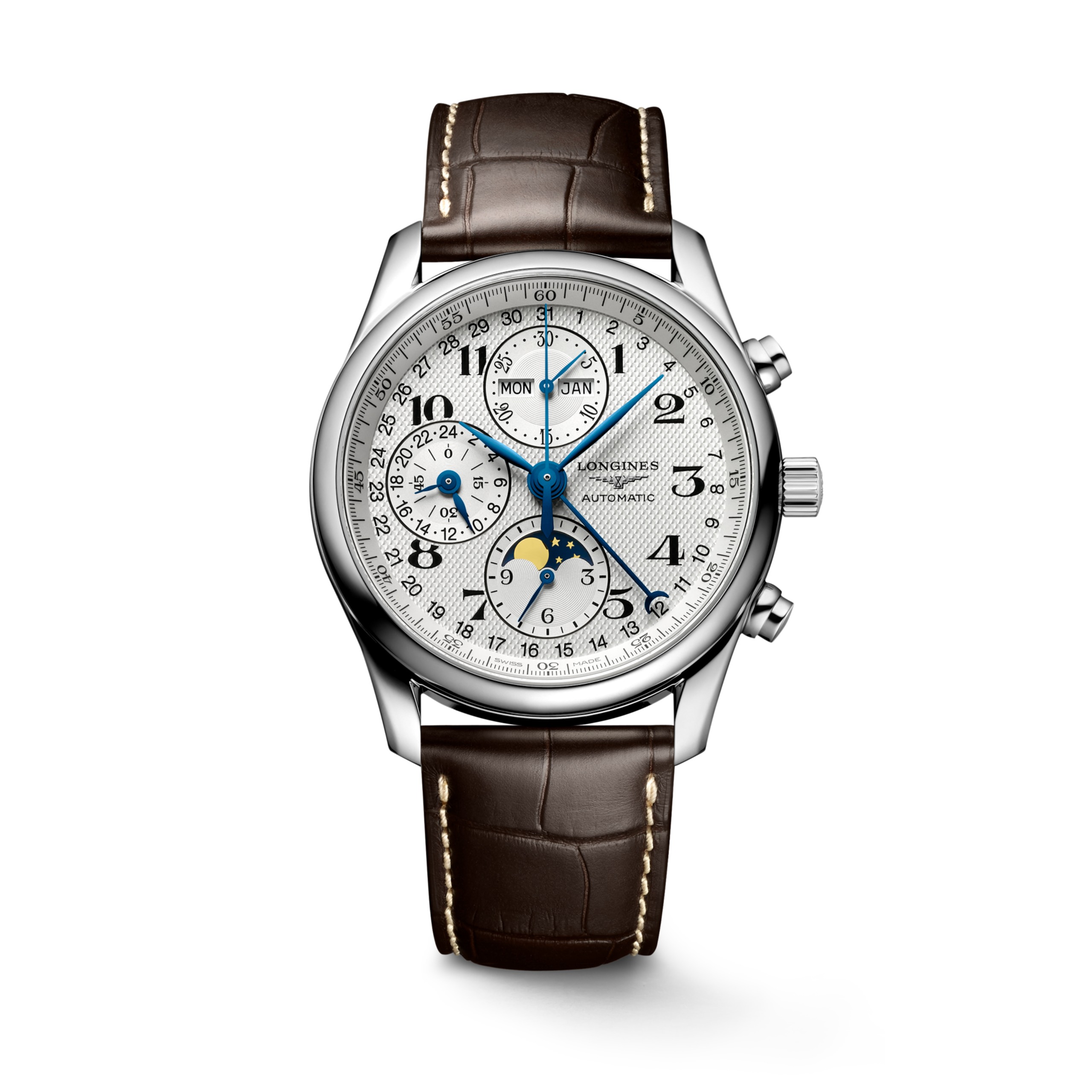 I cronografi della collezione Longines Master rappresentano l'apice dell’artigianato orologiero e dell'eleganza senza tempo. Questa linea emblematica comprende una serie di cronografi meticolosamente realizzati, ognuno dei quali esemplifica l’impegno incrollabile di Longines verso uno stile duraturo e l’eccellenza tecnica. Dalla raffinatezza del quadrante agli intricati movimenti meccanici, questi cronografi testimoniano la storia e l’esperienza di Longines nell’orologeria.