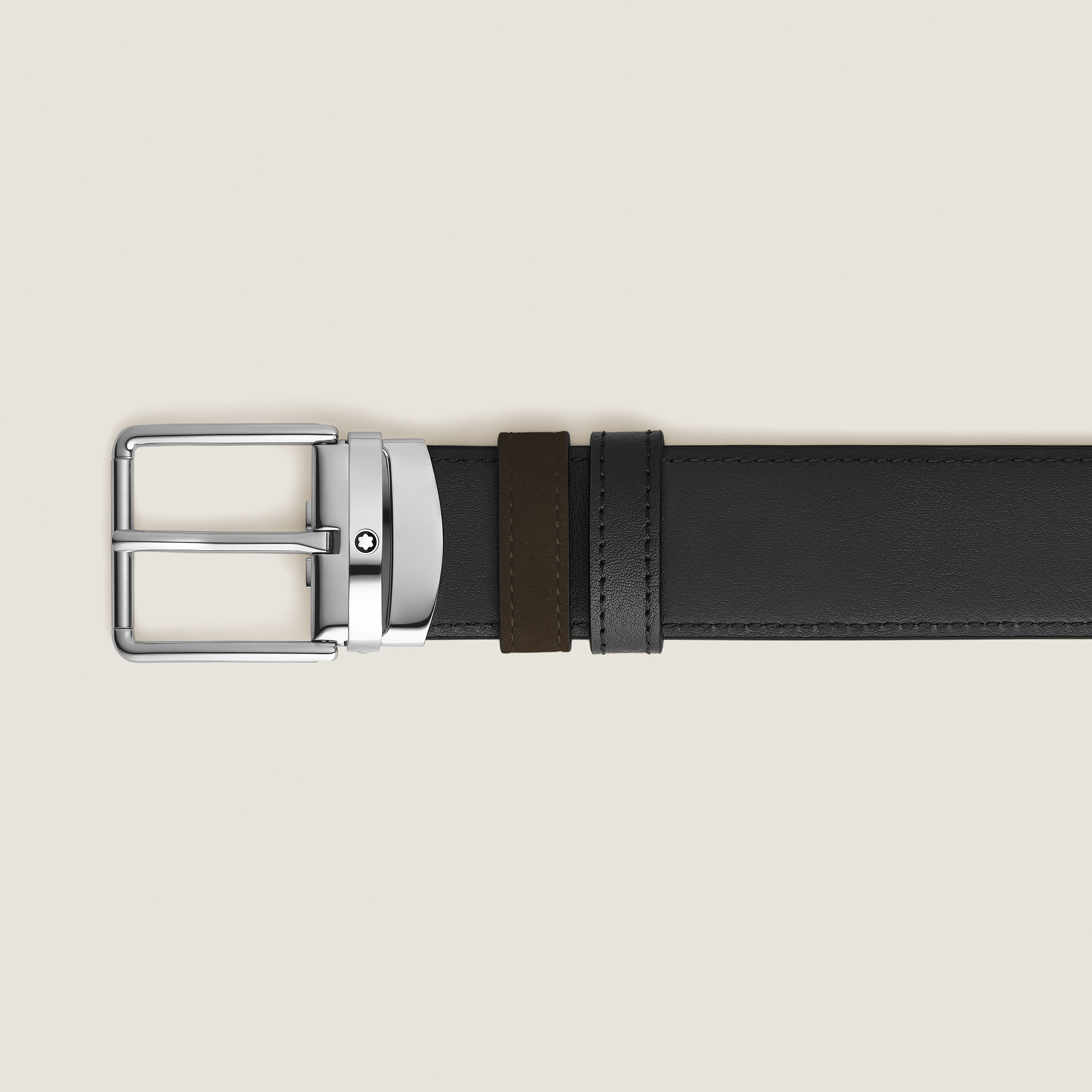 Questa cintura da 35 mm reversibile offre un’eleganza discreta e stile versatile. Un lato della cintura è in pelle granulata in un’elegante tonalità di marrone, mentre l’altro è in lussuosa e morbida pelle nera. La fibbia ad ardiglione Everyday, dal ricercato profilo rettangolare, presenta una lucida finitura PVD nera effetto caucciù e bordi puliti con un logo Montblanc discreto intarsiato nella base.