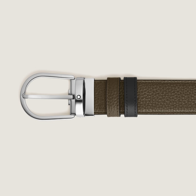 Questa cintura reversibile abbina eleganza discreta e praticità, offrendo due stili distintivi in un unico accessorio. Con la nostra distintiva fibbia a ferro di cavallo Montblanc finitura palladio, un lato della cintura da 35 mm è in pelle granulata kaki, mentre l’altro è in ricercata pelle Meisterstück nera dalla sofisticazione classica.