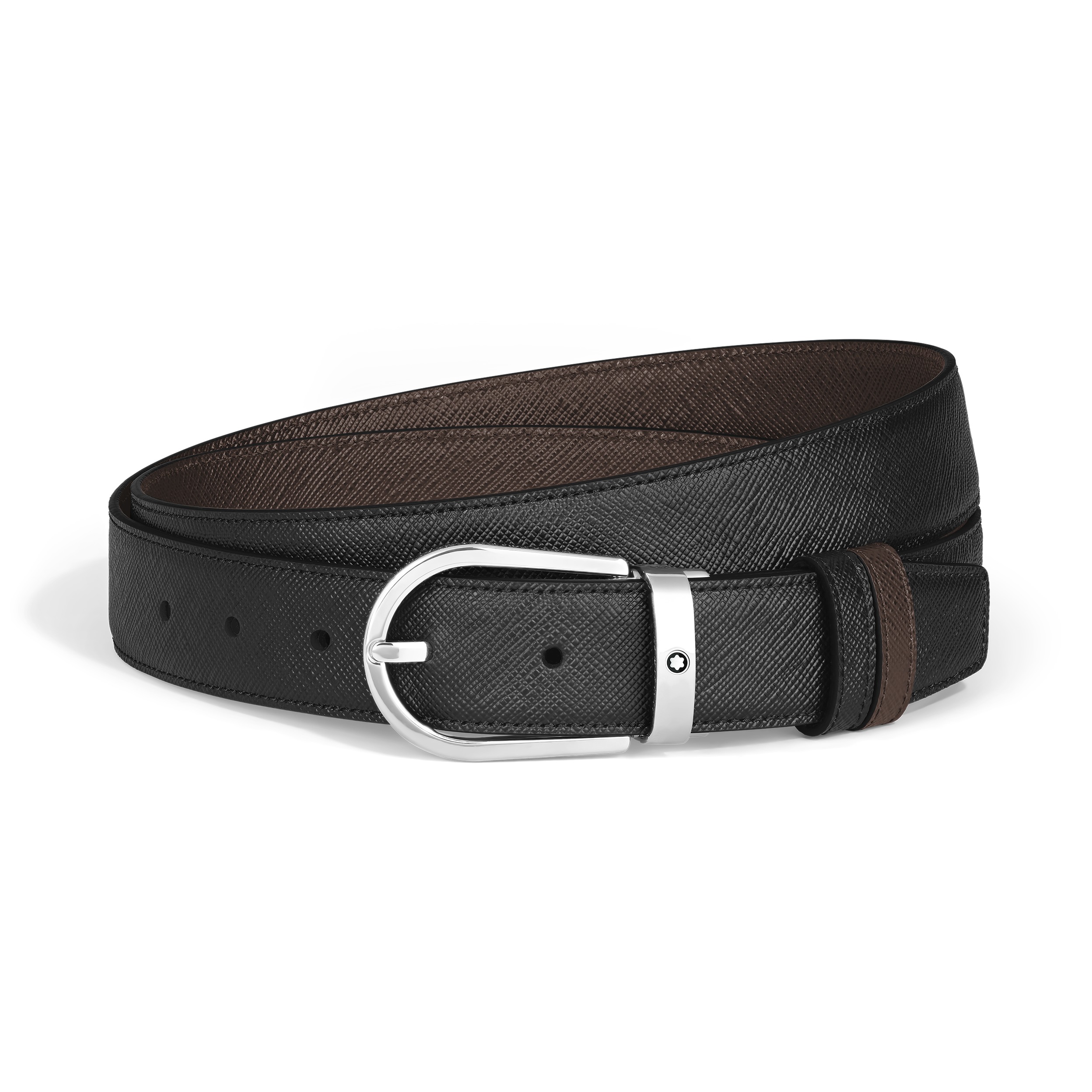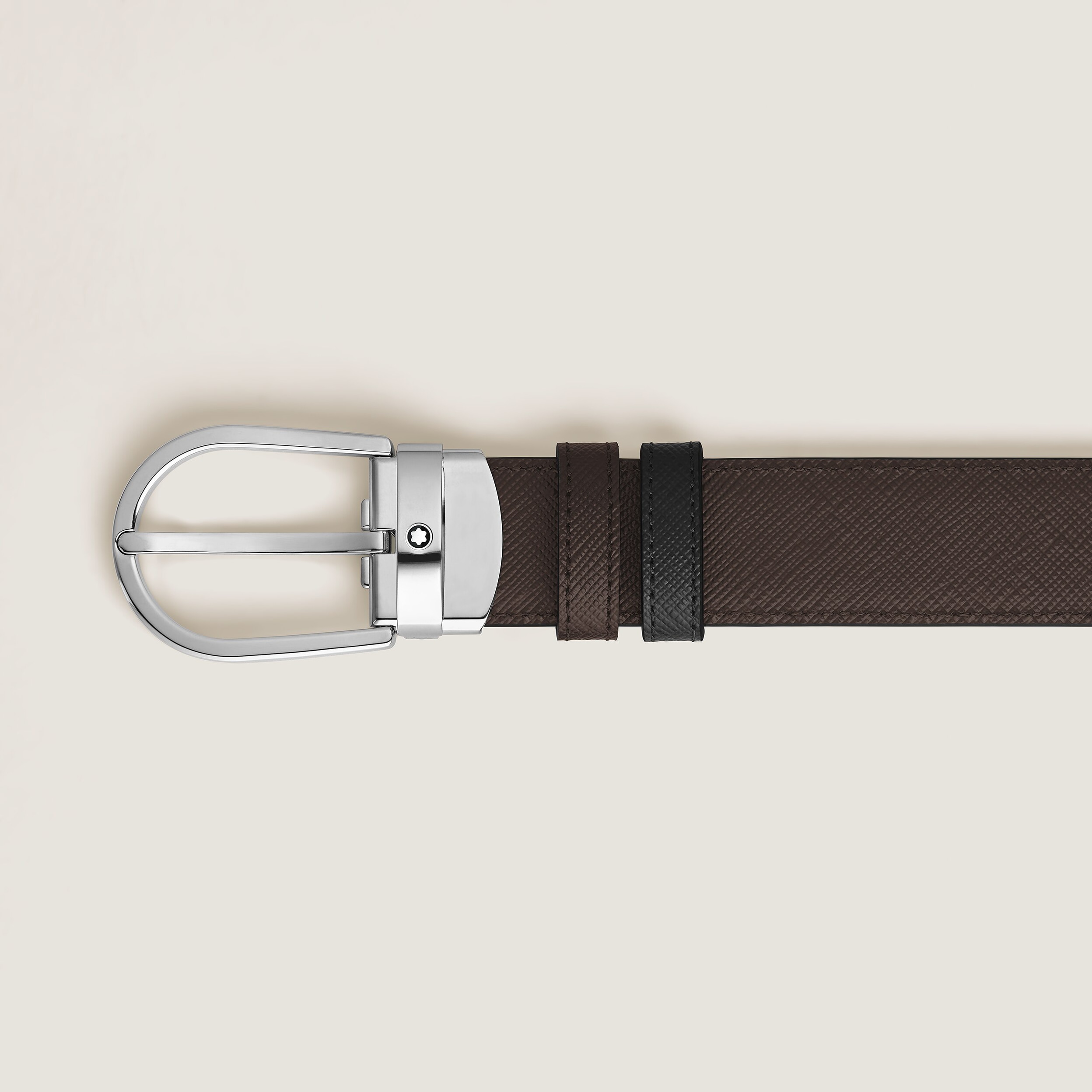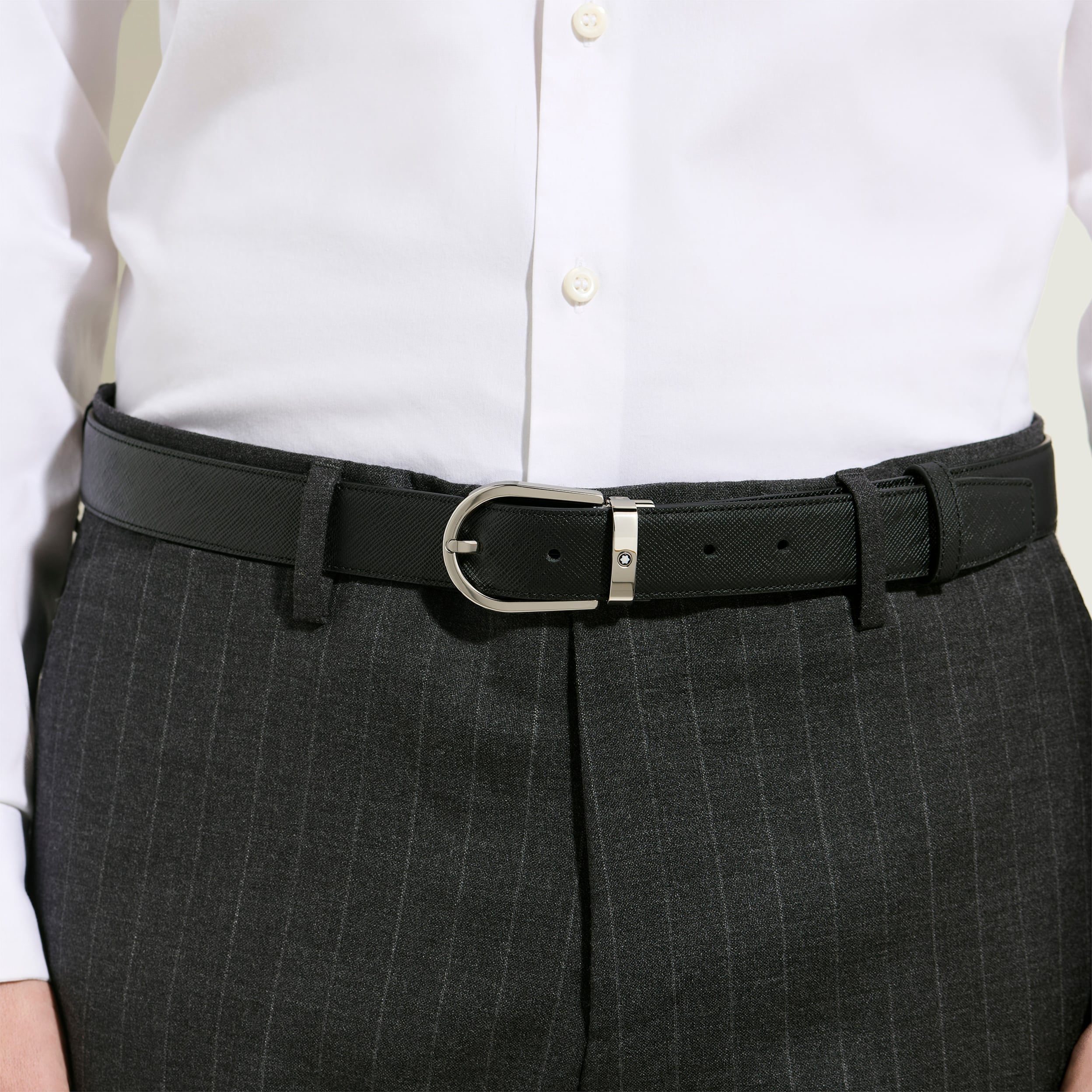 Scopri l’eleganza discreta di questa cintura reversibile da 30 mm in pelle. Realizzata in pelle Sartorial goffrata in classico nero su un lato e in una sofisticata tonalità ebano sull’altro, la cintura è completata da una sofisticata fibbia a ferro di cavallo finitura palladio lucido, che valorizza perfettamente sia i look formali che quelli casual.