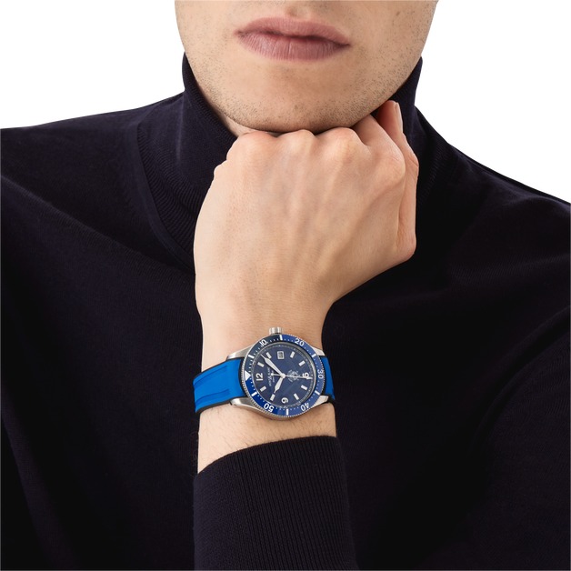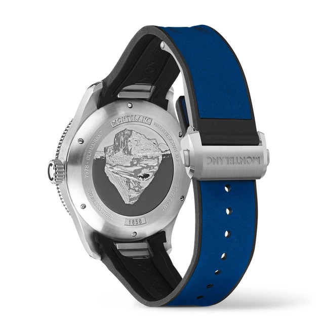 Il primo orologio da immersione sportivo di Montblanc, il Montblanc Iced Sea Automatic Date, presenta un quadrante con motivo “ghiacciaio” che dà l’impressione di guardare nelle profondità di un ghiacciaio. Questo quadrante blu con motivo “ghiacciaio” è ispirato al Mer de Glace (Mare di Ghiaccio), il ghiacciaio principale del Massiccio del Monte Bianco. La sua texture è stata ottenuta utilizzando una tecnica ancestrale quasi dimenticata chiamata gratté-boisé. Il segnatempo è racchiuso in una cassa in acciaio pregiato da 41 mm e presenta inoltre una lunetta unidirezionale in ceramica bicolore, un fondello inciso e un cinturino in caucciù blu intercambiabile con regolazioni raffinate, per una vestibilità perfetta. Il segnatempo è conforme alla normativa ISO 6425 per gli orologi da immersione ed è impermeabile fino a 300 metri.
