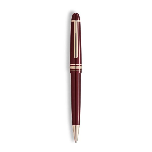 Il design intramontabile della penna a sfera media Montblanc Meisterstück bordeaux rievoca la storia della Maison, che ha scelto il bordeaux come tonalità distintiva fin dagli anni ‘20. Da allora, questo colore è rimasto un riferimento nella tradizione di Montblanc. Il cappuccio e il corpo sono realizzati in pregiata resina bordeaux con dettagli nella distintiva finitura oro, con l’iconico emblema Montblanc bianco intarsiato nella parte superiore del cappuccio. Con distintiva finitura oro, Montblanc descrive la tonalità luminosa di oro giallo che è diventata un simbolo degli strumenti da scrittura della Maison.